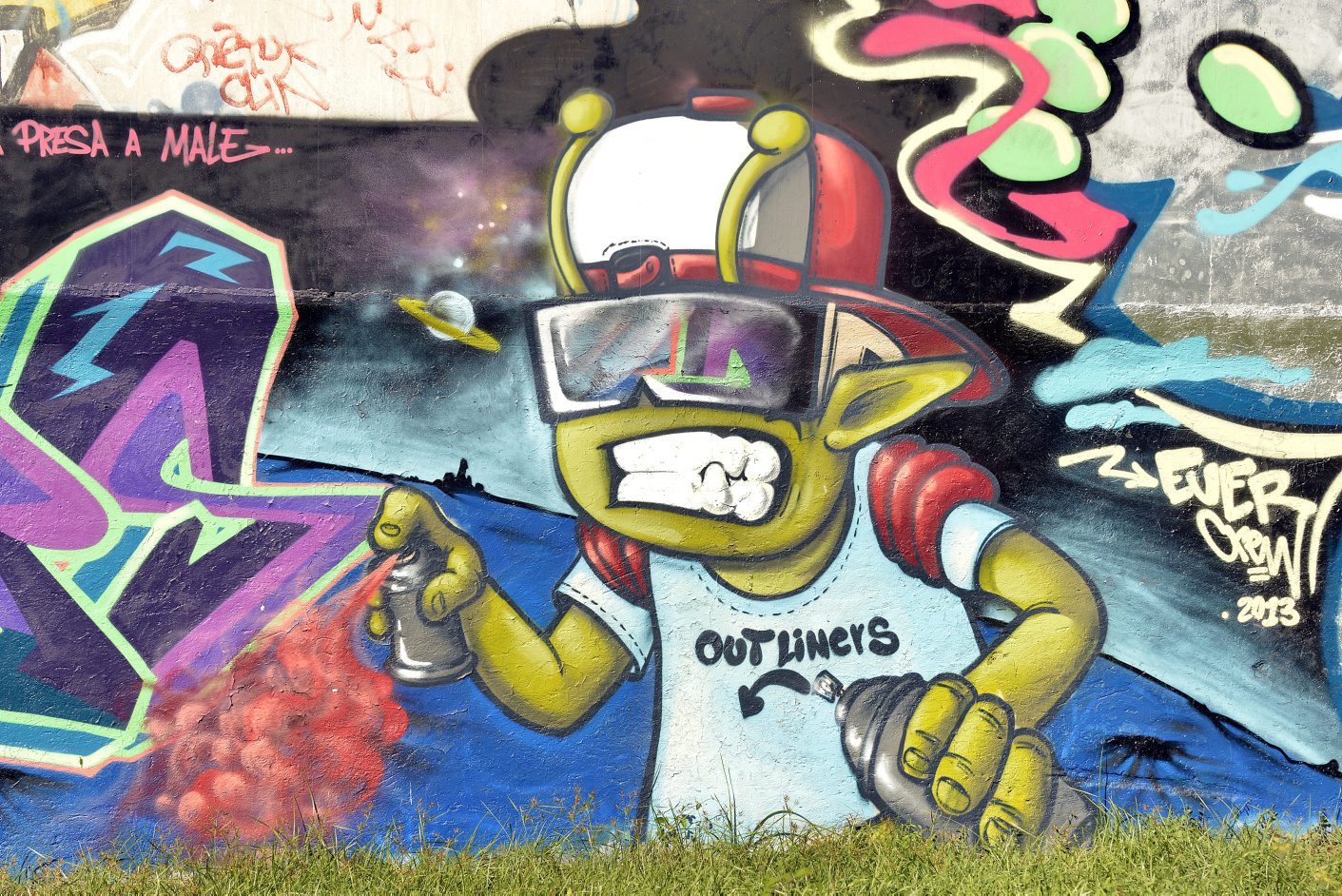 Il muro di cinta di una scuola e un grande prato al quartiere Talenti, 2013
