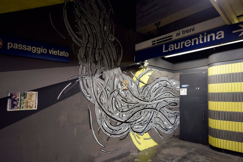 Street Art, Urban Breaths Project agosto 10, 2015 1450 × 968 Stazioni Metro B 21/02/2015 Roma. Nuovi murali in quattro stazioni della Metro B con il progetto Urban Breaths, di Atac e Rmp_Lab Lanificio Factory. Il murale di Iron Mould, alla stazione Rebibbia