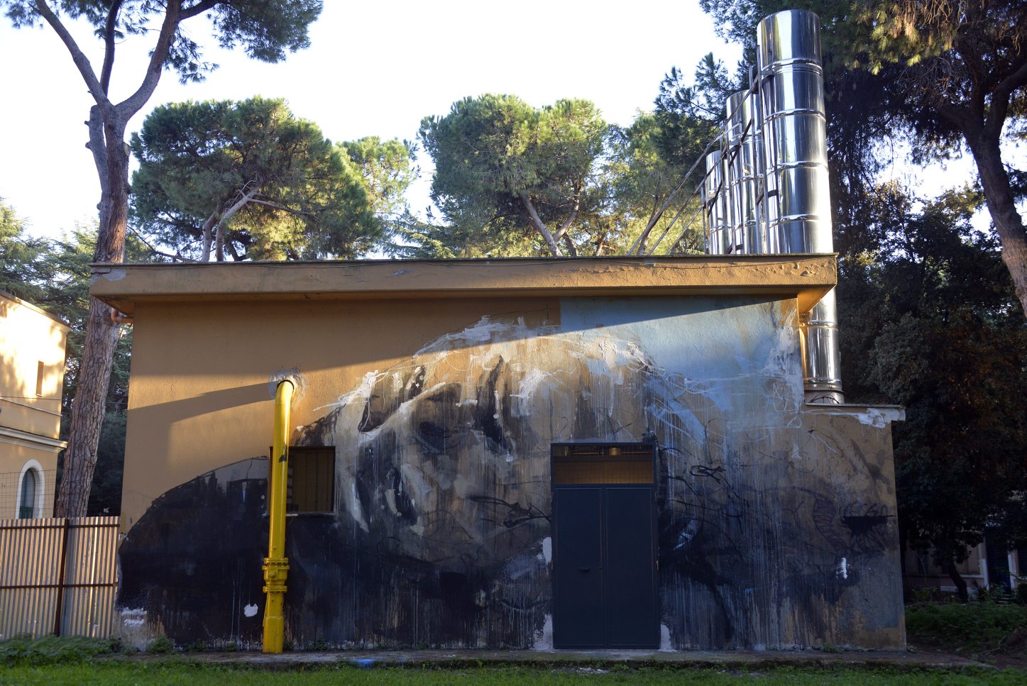 09/11/2015 Roma. Da Primavalle si allarga al Santa Maria della Pietà Muracci Nostri, il progetto di street art ideato dallo scrittore Maurizio Mequio. con alcuni murali nel parco dell’ex ospedale psichiatrico, in accordo con la ASL.