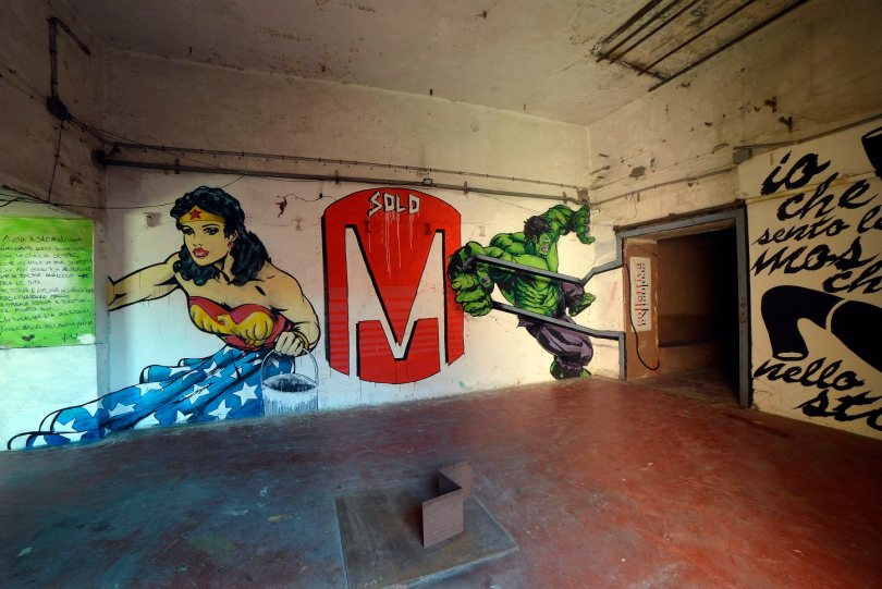 30/11/2015 Roma. Il MAAM, Museo dell’Altro e dell’Altrove a Metropoliz, ex fabbrica di salumi Fiorucci occupata nel 2009 da famiglie senza casa di varie nazionalità. Il MAAM è un progetto di Giorgio De Finis che si propone di difendere l’occupazione abitativa grazie nalla presenza di opere d’arte inamovibili. Apre il sabato ai visitatori. Plan D. Last Level, di Solo