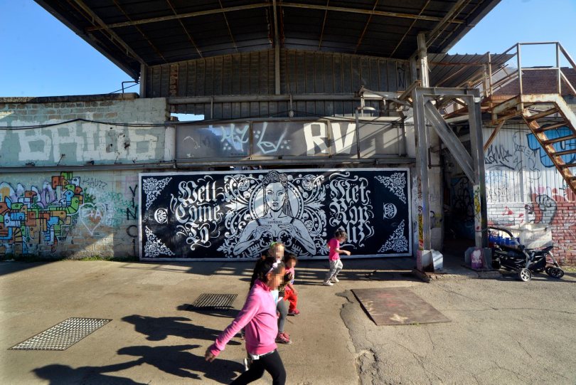 30/11/2015 Roma. Il MAAM, Museo dell’Altro e dell’Altrove a Metropoliz, ex fabbrica di salumi Fiorucci occupata nel 2009 da famiglie senza casa di varie nazionalità. Il MAAM è un progetto di Giorgio De Finis che si propone di difendere l’occupazione abitativa grazie nalla presenza di opere d’arte inamovibili. Apre il sabato ai visitatori. Welcome to Metropoliz, di Diamond