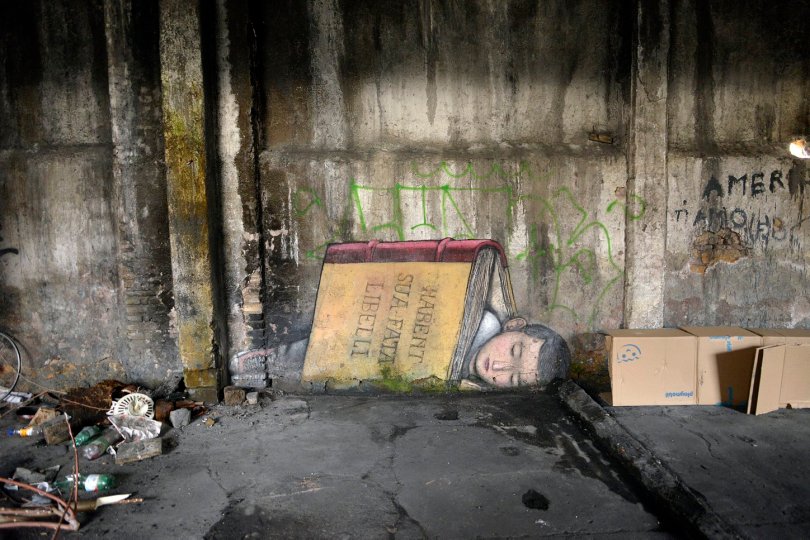 18/01/2017 Roma. Il Museo Abusivo Ex Miralanza, nei ruderi della fabbrica di detersivi chiusa nel 1957. L’operazione, a cura di Stefano Antonelli di 999 Contemporary, ha visto l’interrvento dello street artist Seth, che ha coinvolto l’intero fabbricato. Ad accogliere gli ospiti Firu Tito, un rom cui Antonelli ha affidato la direzione della struttura.