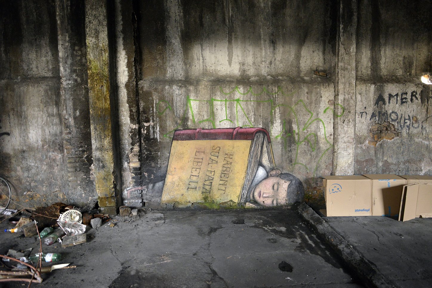 18/01/2017 Roma. Il Museo Abusivo Ex Miralanza, nei ruderi della fabbrica di detersivi chiusa nel 1957. L’operazione, a cura di Stefano Antonelli di 999 Contemporary, ha visto l’interrvento dello street artist Seth, che ha coinvolto l’intero fabbricato. Ad accogliere gli ospiti Firu Tito, un rom cui Antonelli ha affidato la direzione della struttura.