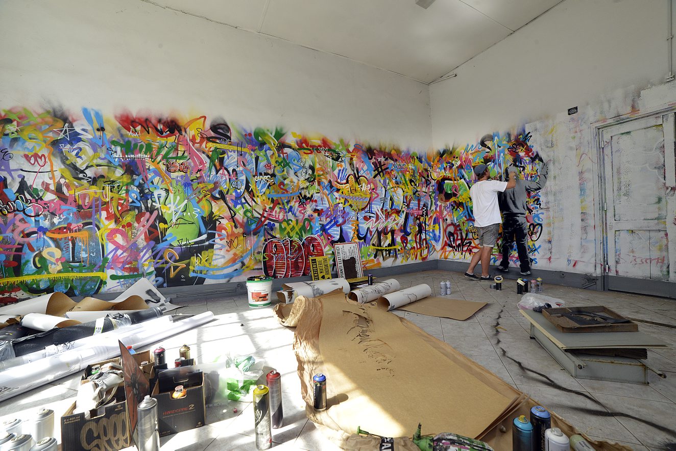 17/09/2015 Roma. Ex Caserma Guido Reni. Presentazione di Outdoor 2015, festival della creatività urbana ideato e curato da Nufactory, VI edizione. All’opera l’artista norvegese Martin Whatson