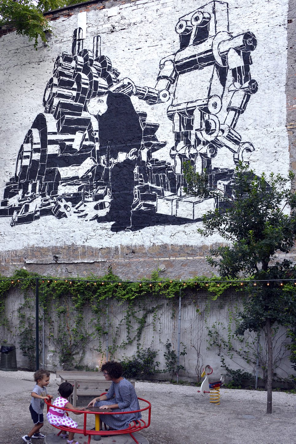 Street art al Pigneto agosto 27, 2015 965 × 1447 Street art al Pigneto Caffè ristorante Rosti 27/08/2015 Roma. Street art al Pigneto. Via Bartolomeo d’Alviano, Giardino del caffè ristorante Rosti