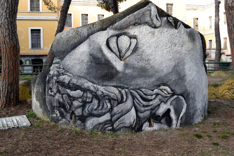 Street Art al Santa Maria della Pietà giugno 30, 2016 1448 × 966 Street Art al Santa Maria della Pietà 09/05/2016 Roma. Santa Maria della Pietà. Street art nel parco. Murale di Carlos Atoche
