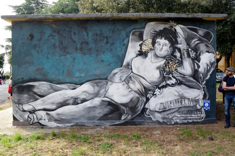 Street Art al Santa Maria della Pietà giugno 30, 2016 1448 × 966 Street Art al Santa Maria della Pietà 09/05/2016 Roma. Santa Maria della Pietà. Street art nel parco. Murale di Carlos Atoche