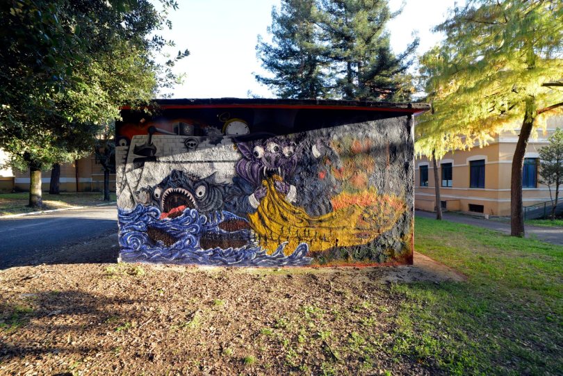 09/11/2015 Roma. Da Primavalle si allarga al Santa Maria della Pietà Muracci Nostri, il progetto di street art ideato dallo scrittore Maurizio Mequio. con alcuni murali nel parco dell’ex ospedale psichiatrico, in accordo con la ASL.