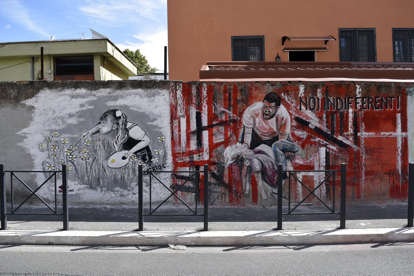 18/09/2016 Roma. II edizione di Muracci Nostri a Primavalle, con oltre 50 nuove opere, finanziata con un crowdfunding online e donazioni di residenti. Questanno la manifestazione è dedicata a Gian Maria Volontè. Murali di Alberto L. e MK a via Ascalesi