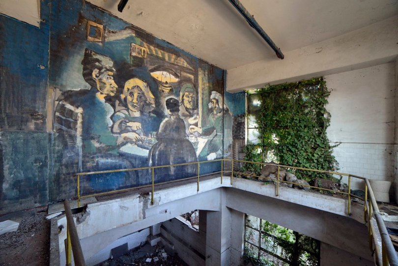 Street Art in fabbrica abbandonata marzo 14, 2016 1190 × 795 Street Art in fabbrica abbandonata 14/03/2016 Roma. Periferia est. Fabbrica farmaceutica abbandonata Leo Penicillina. Murale di Carlos Atoche ispirato ai Mangiatori di Patate di Van Gogh