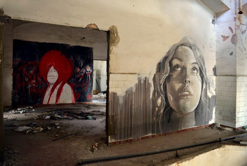 Street Art in fabbrica abbandonata marzo 14, 2016 1190 × 798 Street Art in fabbrica abbandonata 14/03/2016 Roma. Periferia est. Fabbrica farmaceutica abbandonata Leo Penicillina. Murale di Gomez. Dietro murale di MK