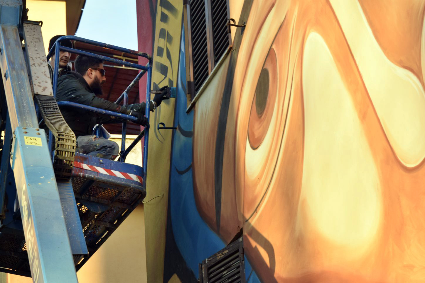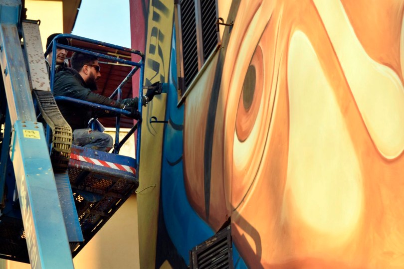 Mr. Klevra, Nostra Signora di Shangai, con l’artista impegnato negli ultimi ritocchi