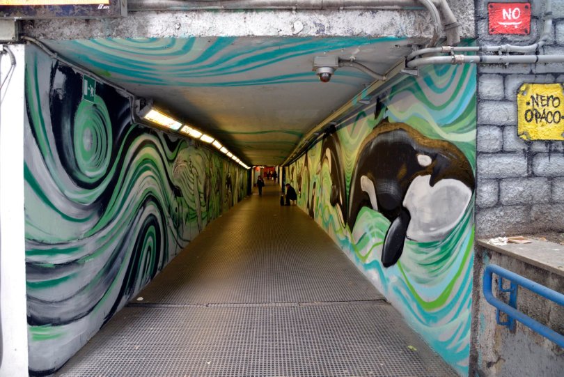 26/05/2016 Roma. Street Art nella stazione Nomentana, realizzati nel quadro del progetto ‘Arte in stazione e città a colori’ di Franco Galvano, promosso da NSA (Nucleo Sicurezza Ambientale) Roma Nord. Murali di Moby Dyck