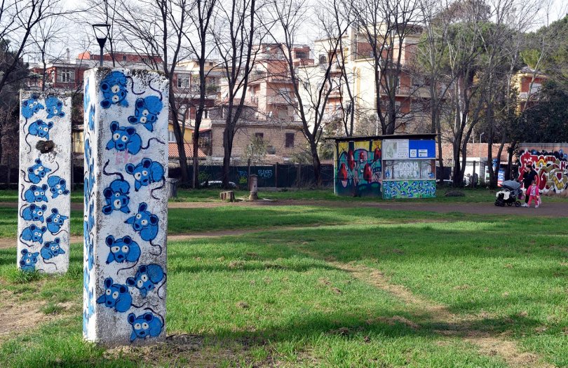 Topi blu nel parco del Pineto febbraio 7, 2017 1468 × 953 Topi blu nel parco del Pineto 06/02/2017 Roma. Invasione di topi blu presso la Casa del Parco del Pineto. E’ un intervento dello street artist Pino Volpino per segnalare la folta presenza di ratti veri nella zona